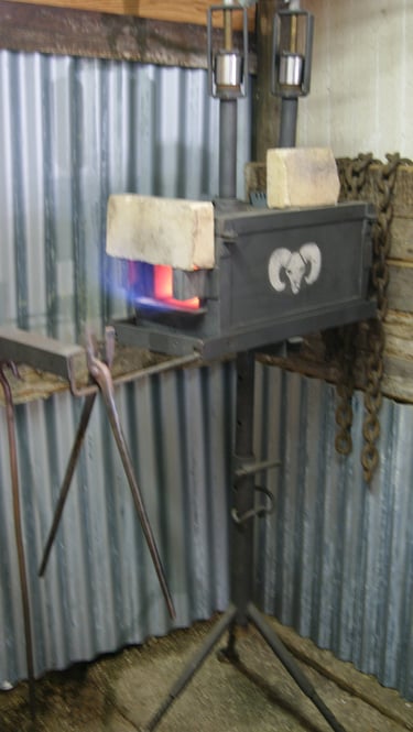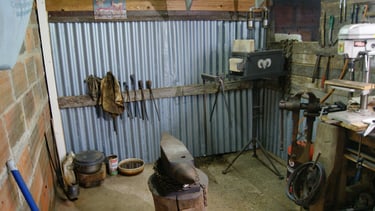 Situé dans le petit village de Saint-Christophe-la-Couperie, dans le Maine-et-Loire, mon atelier est équipé d'une forge à gaz, d'une enclume robuste et d'une variété d'outils professionnels.